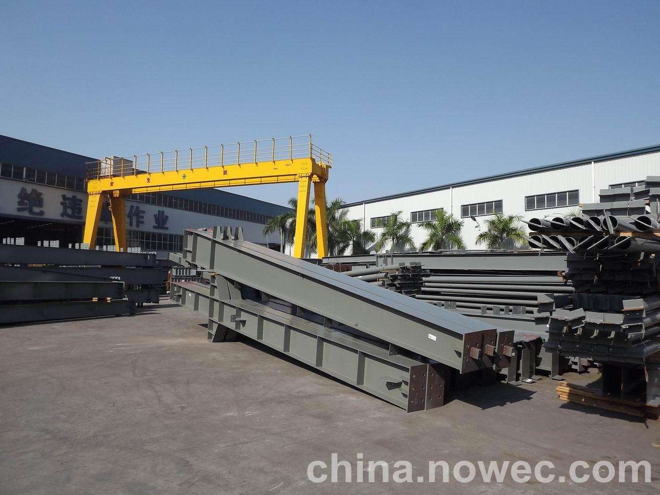 条状单元一般沿长跨方向分割,其宽度约为1~3个网格,其长度为l2或l2/2(l2为短跨跨距)。块状单元一般沿二连浩特网架平面纵横向分割成矩形或正方形单元。每个单元的重量以现有起重机能胜任为准。条(块)与条(块)之间可以直接拼装,也可空一网格在高空拼装。由于条(块)状单元是在地面拼装,因而高空作业量较高空散装法大为减少,拼装支架也减少很多,又能充分利用现有起重设备,故较经济。这种安装方法适用于分割后网架的钢度和受力状况改变较小的各类中小型网架,如两向正交正放四角锥、正放抽空四角锥等网架。